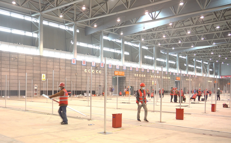 寧可備而不用,不可用時(shí)無(wú)備。3月25日,根據(jù)國(guó)家和省疫防要求,合肥市決定立即改造市會(huì)展中心一期項(xiàng)目,盡快建設(shè)擁有2000張床位規(guī)模的方艙醫(yī)院。作為屢屢圓滿完成抗疫緊急建設(shè)任務(wù)的安徽三建成為合肥市方艙醫(yī)院建設(shè)的主力軍,承擔(dān)濱湖會(huì)展中心10號(hào)館的改建任務(wù)。