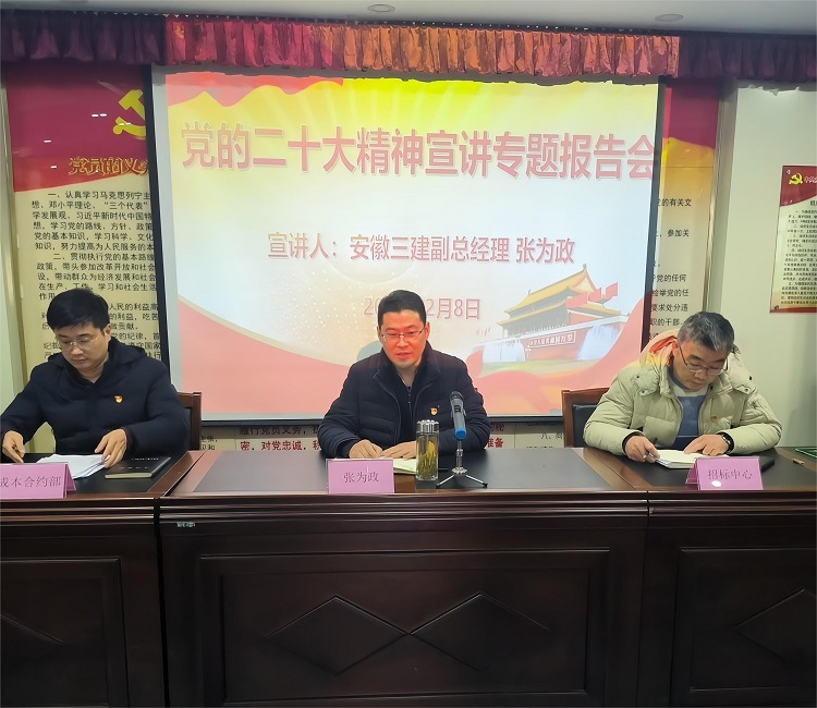 2月8日,公司副總經(jīng)理張為政赴香楓創(chuàng)意園為七公司、九公司、架業(yè)公司等聯(lián)系點(diǎn)單位開展黨的二十大精神專題宣講,公司招標(biāo)中心主任張俊、成本合約部主任陳鵬參加。