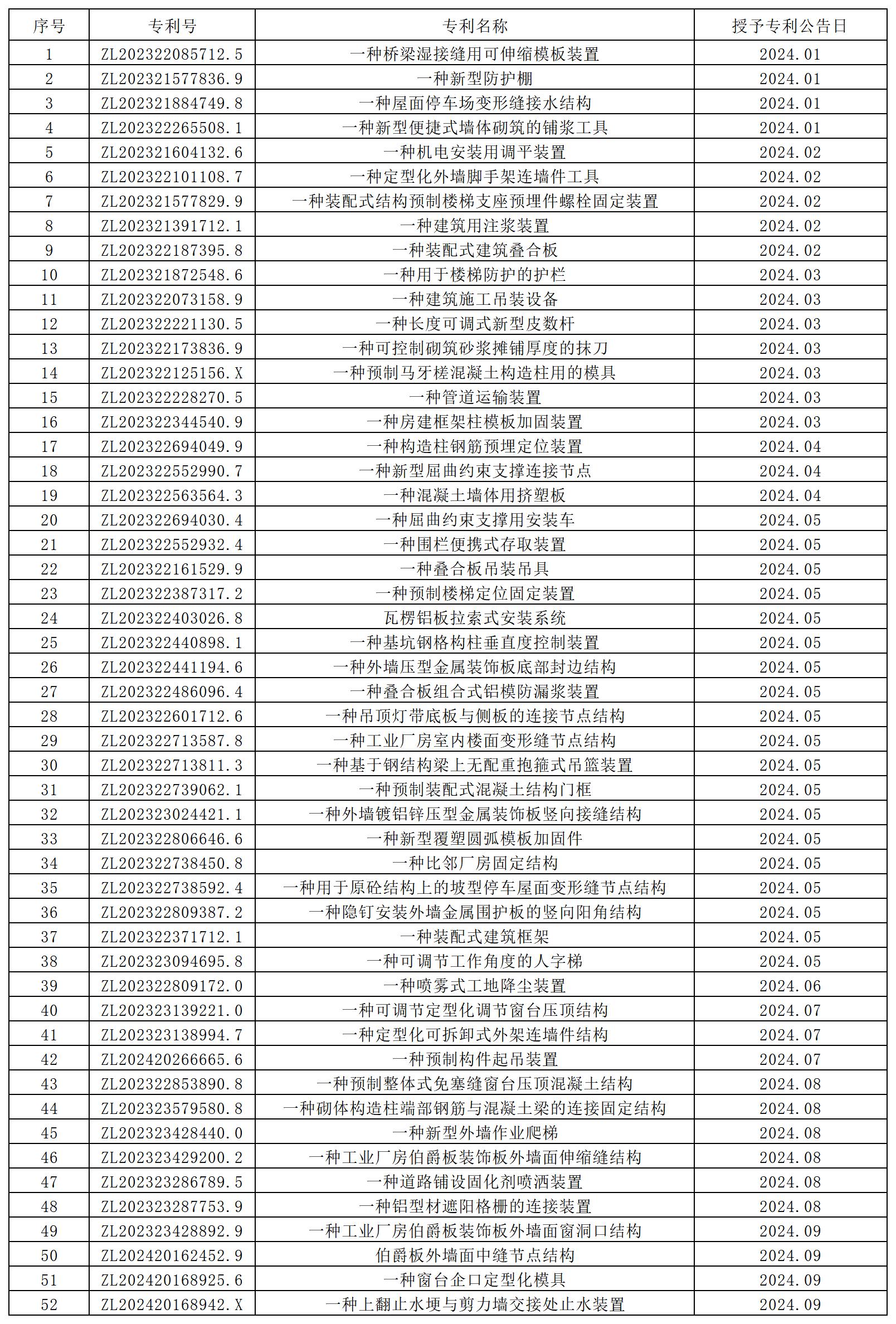 2024年公司授權(quán)實(shí)用新型專利52項(xiàng) 發(fā)布時(shí)間:2024-10-14 來(lái)源:工程建設(shè)研究院 撰稿人:徐冬 瀏覽次數(shù):2995 2024年公司授權(quán)實(shí)用新型專利52項(xiàng)。
