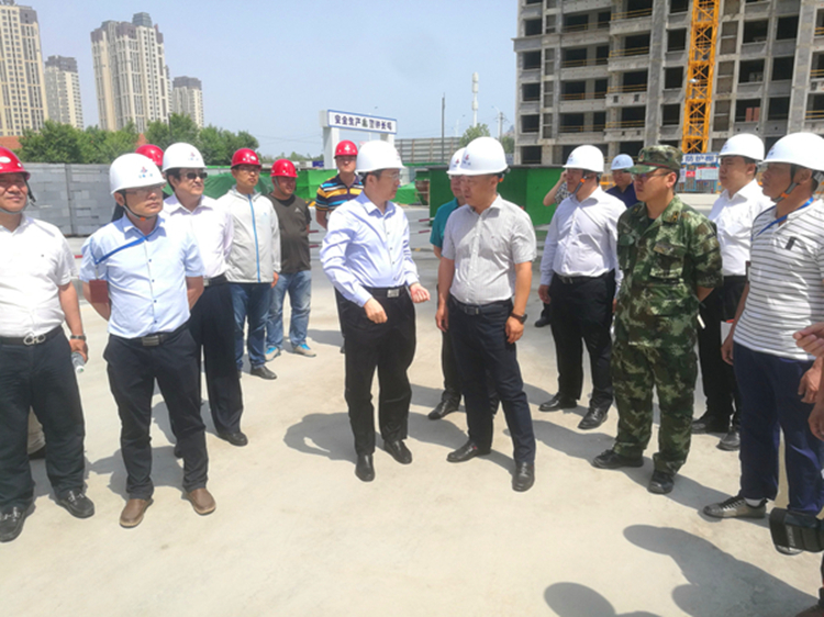 煙臺市高新區(qū)工委書記一行蒞臨三建大連公司煙臺力高三期項(xiàng)目督查